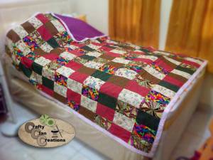 No wonder that we are having a talent in needlework, we (me, my sisters and my daughters) proudly got this ability from our mama/grandma. She sewn all her clothes and our childhood clothes, as well, by herself. Until two months before she went to our Father’s home (February 11, 2015 was the saddest day for all of us), she was still sewing the patchwork blankets. She made almost 200 pcs of patchwork blanket in approximately 48 months. I’ve always set a waiting list for customers who were happily waiting for their turn to purchase the blanket – with no options for design, prints, and colors, tho. Each piece of the blanket is always sold out before it is completely done. Ahh…I miss my mom a lot…never a day I don’t think about you, Mom…
